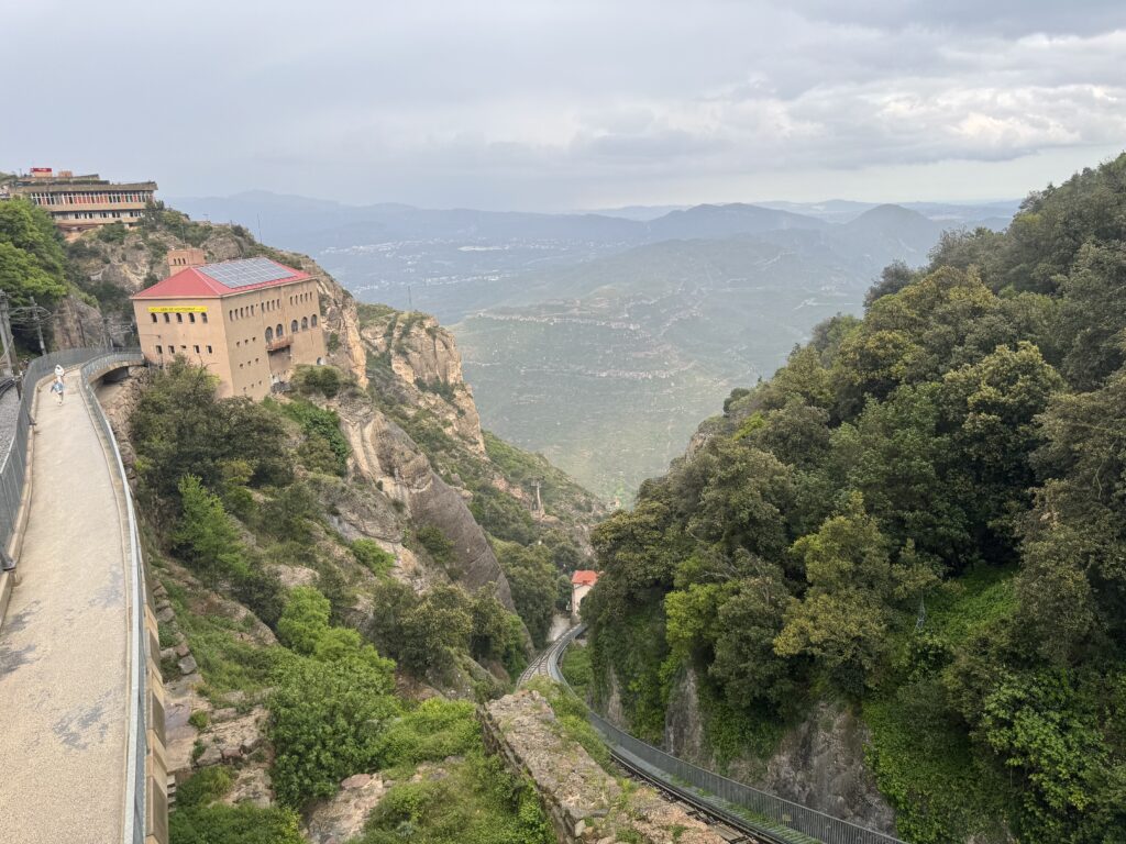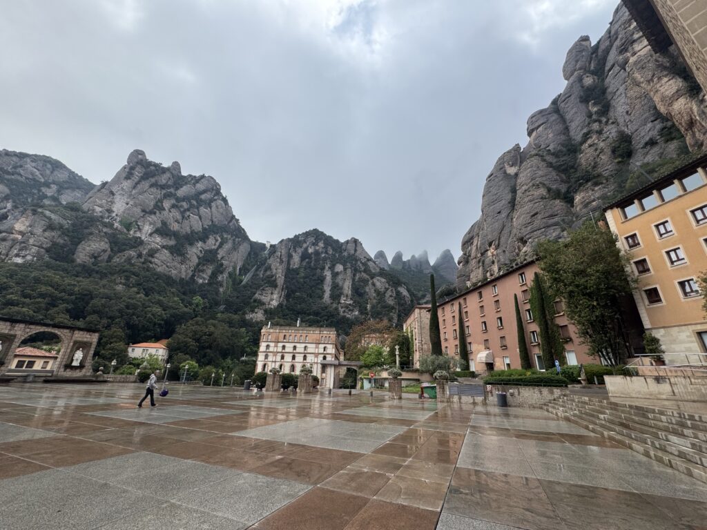 • After taking a train about an hour from Barcelona to access this scenic mountainous area, visitors get a choice between taking a cogwheel train or a cable car up to the Abbey . While I was on the train it was raining and I didn’t have an umbrella. But miraculously, by the time I reached the summit of Montserrat at the Abbey, it had stopped raining and I could appreciate the expansive views I looked all around me at the vast canyon and felt at harmony and peace with the world around me, as I was dwarfed by an amazing natural landscape of the most unique rock formations I had ever seen with serrated peaks that are truly breathtaking.