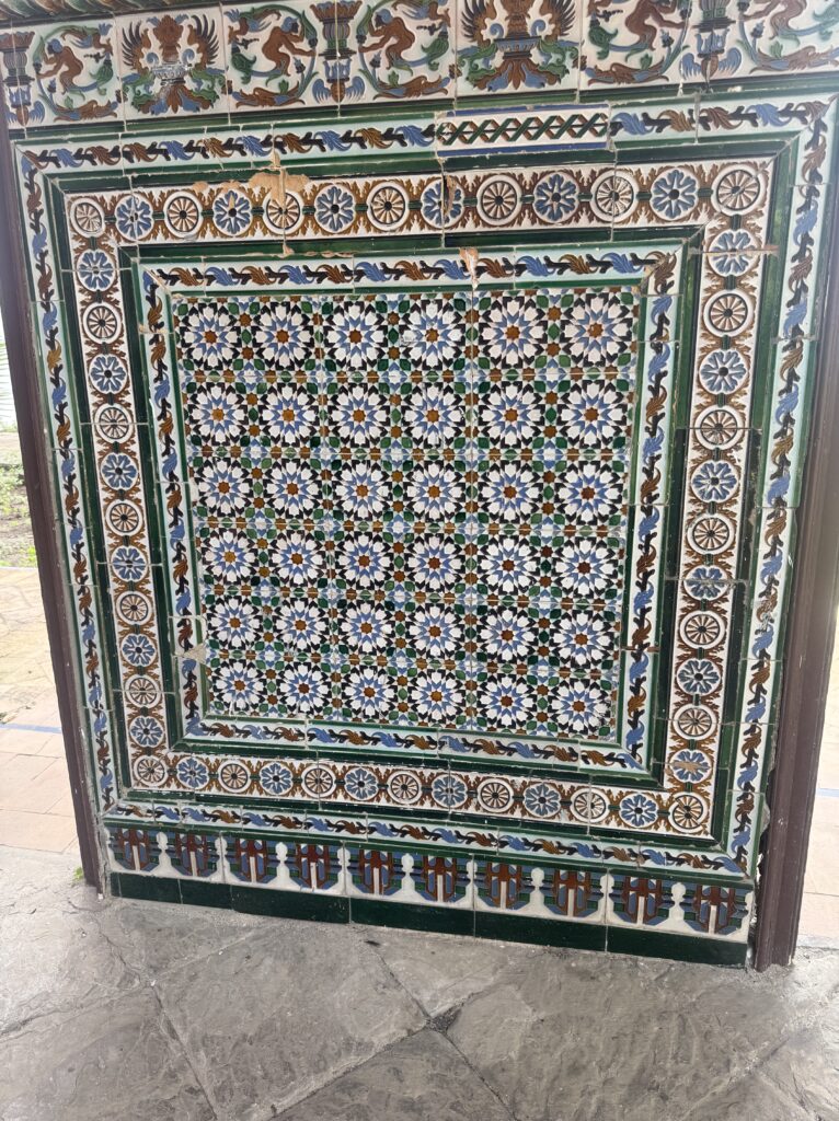 • I want to make a special note about Spain and Portugal and the very special tilework that can be found in this region. The tiles are called Azulejos which are glazed ceramic tiles that feature vibrant, hand-painted designs and adorn facades, churches and sometimes include historical narratives  in their intricate patterns. These originate as an artform of geometric Moorish prevalent in south Andalucia near Spain’s Alhambra. The Portugese adopted the art and elevated it to a national art form there as well including them in large-scale narrative murals that serve as a visual history. I witnessed some of these very special tilework installations in the Alhambra in Granada Spain and also in Sao Bento Train Station in Porto, in addition to seeing them in many of the historic hospitals I visited.